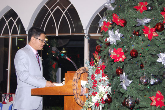 Ms. Quản nhiệm chia sẻ lời Chúa với chủ đề: "CHÚA TÌNH YÊU GIÁNG SINH", câu gốc Giăng 3:16 "Vì Đức Chúa Trời yêu thương thế gian, đến nỗi đã ban Con một của Ngài, hầu cho hễ ai tin Con ấy không bị hư mất mà được sự sống đời đời.". Phần tất lễ, MsTr/s. Huỳnh Sỹ Hùng cầu nguyện và chúc phước.