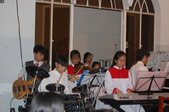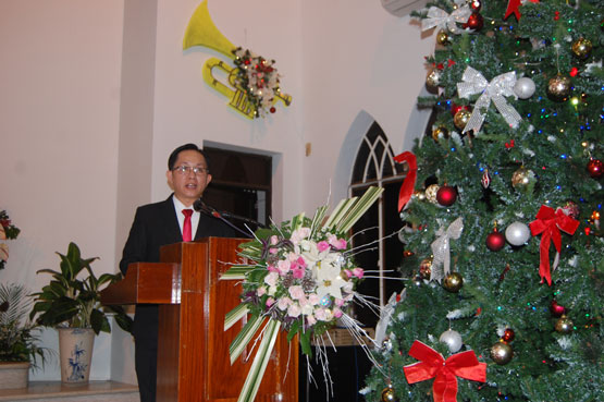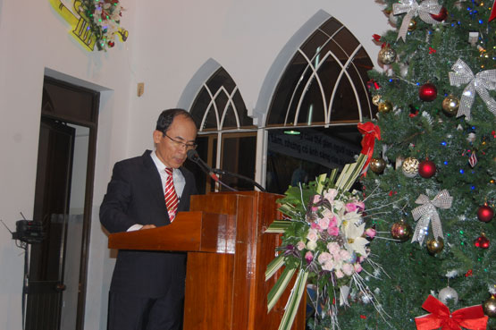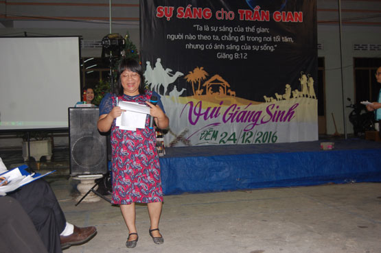 Sau khi MsTr/s Huỳnh Sỹ Hùng cầu nguyện Khai lễ, các bài Thánh ca Giáng Sinh được các ban hát lễ tôn vinh Chúa cách rập ràng đem lại không khí hân hoan mừng Chúa Giê-xu đã giáng sinh. Tk. Nguyễn Hoàng Thảo đọc diễn văn với chủ đề: Sự Sáng Cho Trần Gian nhấn mạnh Chúa Giê-xu là Sự sáng đã giáng sinh xuống trần gian tối tăm để đem lại hy họng cho con người lầm lạc trong tội lỗi. Qua đó kêu gọi mọi người thật sự tiếp nhận Chúa để được sự để nhận được sự sáng từ Thiên Thượng.