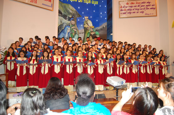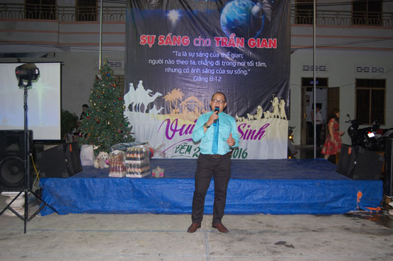 Vào lúc 19h30 thứ Bảy ngày 24/12/2016. Để Kỷ niệm Ngày Chúa Giê-xu Giáng Sinh lần thứ 2016 Hội thánh Tin Lành Vĩnh Phước có tổ chức Chương trình Mừng Chúa Giáng Sinh với Chủ đề: Sự Sáng Cho Trần Gian. Chủ lễ: MsQn. Nguyễn Đồng Minh, hướng dẫn chương trình: Uv. Phan Kiều. Hiện diện gồm quý Mục sư, MsTr/s, QpMs và hơn 500 con cái Chúa tham dự.