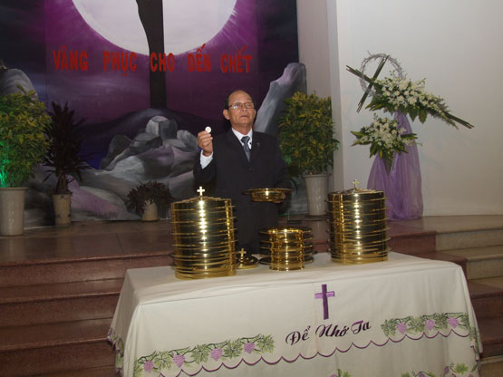 Tiếp đến, Hội thánh thông công với thân và huyết Chúa qua Lễ Tiệc Thánh.