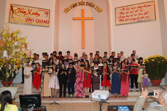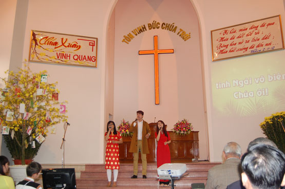 Trong thì giớ thờ phượng, các khu vực có cơ hội tôn vinh Chúa. Những bài Thánh ca với Nội dung thể hiện lòng biết ơn Chúa và hứa nguyện trong năm mới Bính Thân Bính Thân 2016 sẽ trung tín theo Chúa và phục vụ Ngài.