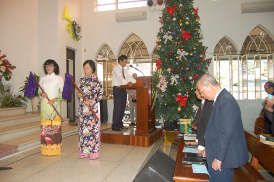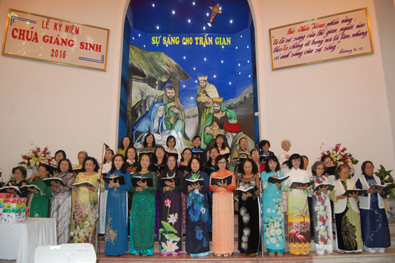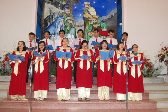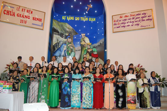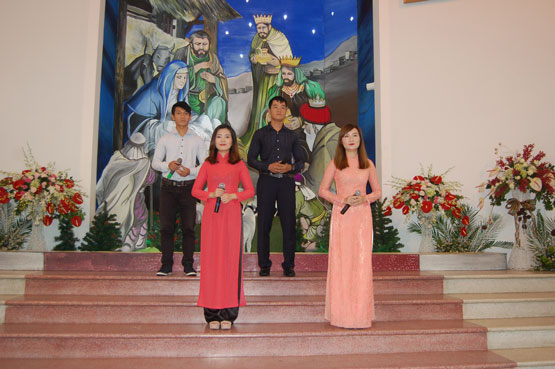 Giờ thờ phượng diễn ra cách trang nghiêm, các ban hát dâng lên Chúa những bài thánh ca Giáng Sinh du dương Mừng Chúa Giáng.