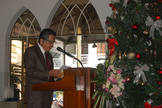 Ms. Lê Văn Thiện giảng luận với đề tài: Sự Sáng Cho Trần Gian, Kinh thánh: Giăng 8:12, nhấn mạnh Chúa Giê-xu là sự sáng đã đến thế gian để đem hy vọng cho trần gian tối tăm ô tội, kêu gọi qúy tôi con Chúa tiếp nhận sự sáng để sống đời sống thánh lành đẹp lòng Chúa.