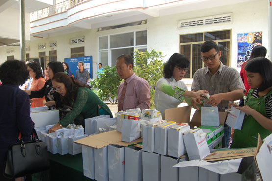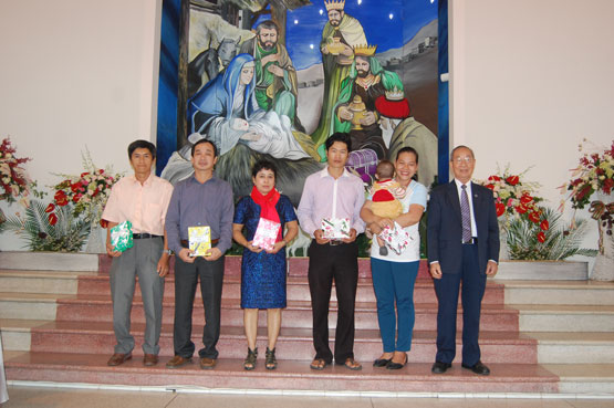 Sau giờ nhóm, các tín hữu nhận những phần quà giáng sinh theo từng khu vực.