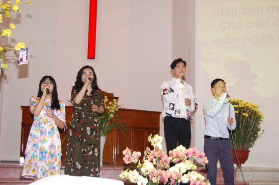 6 Khu vực và Hội nhánh cùng các tín hữu ở xa về được gặp nhau và góp phần tôn vinh Chúa khiến cho không khí mùa xuân càng được thể hiện rõ trong nhôi nhà của Ngài. Những bài Thánh ca với nội dung thể hiện lòng biết ơn Chúa đã bảo vệ gìn giữ trong năm qua và cầu xin Chúa tiếp tục che chở, ban phước trong năm mới 2020 được dâng lên Chúa bằng cả tấm lòng với lời thanh giọng tốt. Nhóm tín hữu tuổi Tý cũng có cơ hội tôn vinh Chúa và nhận quà Mừng tuổi từ Hội Thánh.