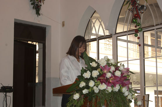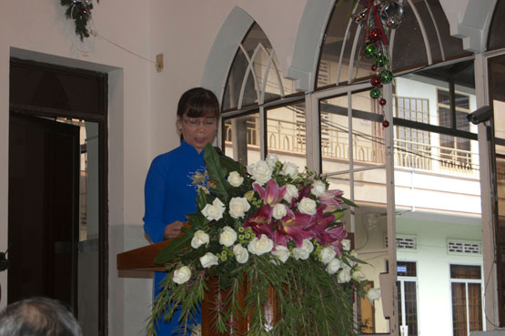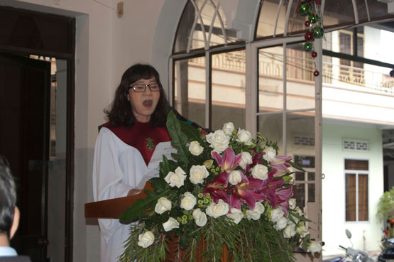 Cô TĐ Nguyễn Trần Hoàng Phương chia sẻ lời Chúa cho Hội thánh và MS trí sự Huỳnh Sĩ Hùng cầu nguyện chúc phước.