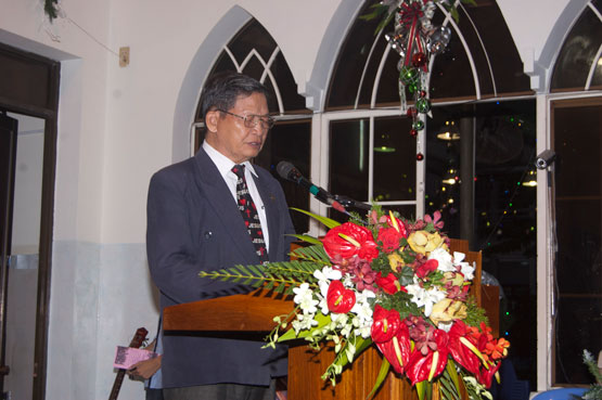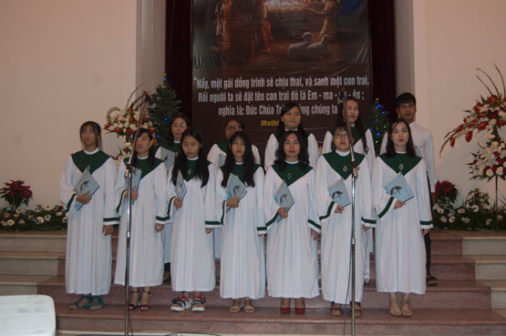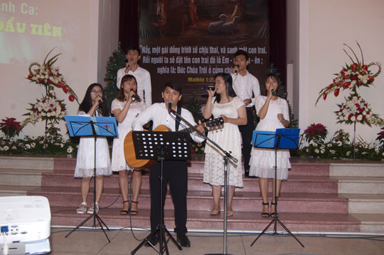 Chấp sự Lưu Bảo Trân hướng dẫn chương trình qua nhưng tiết mục ca nhạc Thánh Tôn vinh Chúa đã giáng sinh làm người để cứu nhân loại. Sau khi MS TB Đại diện MS Võ Văn Tự Cường cầu nguyên khai lễ, Ca đoàn các HT lần lượt tôn vinh Chúa, xen lẫn mục đố vui Giáng sinh do CS Như quý đố vui vẻ và súc tích.