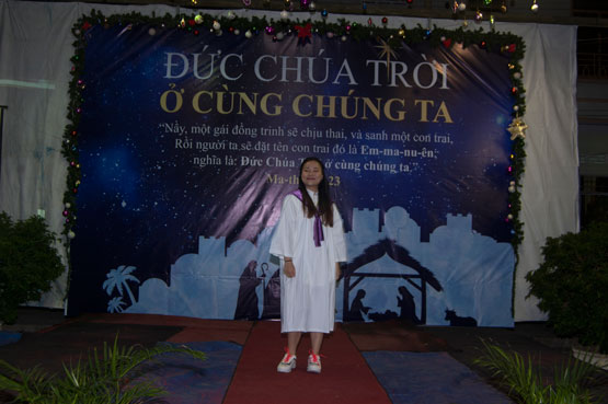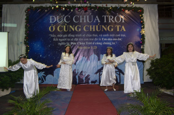 Chương trình diễn ra với nhiều hình thức sinh động, thể hiện lại khung cảnh đêm giáng sinh năm xưa. Cuối chương trình với lời kêu gọi tiếp nhận Chúa Giê-xu vào lòng của cô đặc trách và thầy Tđ Ngô Hoàng Phúc, có nhiều bạn bước lên tin nhận Chúa. Ông Thư ký Lê Khắc Hiếu hướng dẫn các thân hữu cầu nguyện tiếp nhận Chúa. Sau giờ nhóm các bạn thông công vui vẻ và nhận quà nơi ông già Noel.