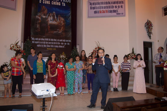 Cuối chương trình với lời kêu gọi tin nhận Chúa, sau lời kêu gọi của MS diễn giả có 14 thân hũu bằng lòng tiếp nhận Chúa làm chủ cuộc đời mình. Ms. Chủ lễ hướng dẫn thân hữa cầu nguyện. Ca đoàn hát Chúc mừng Giáng sinh và chúc mừng năm mới cho Hội Thánh Chúa và quý thân hữu.