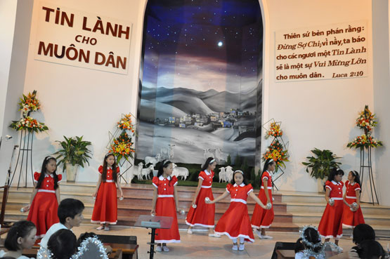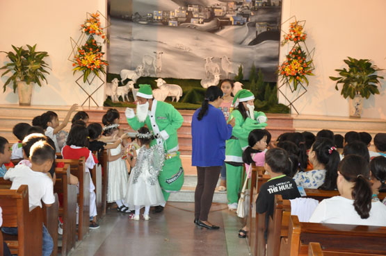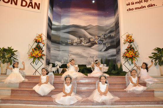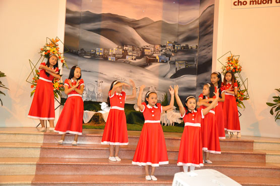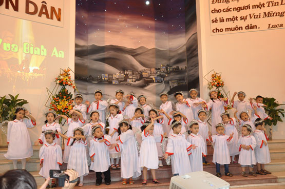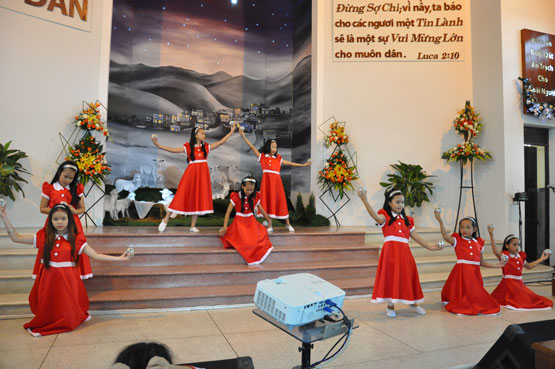 Chương trình diễn ra cách vui vẻ, phước hạnh, các em Thiếu Nhi Ấu với tấm lòng đơn sơ dâng lên Chúa những Vũ khúc, Thánh ca, Thi ca… mừng ngày Chúa Cứu Thế Giê-xu giáng sinh. Hoạt cảnh: Câu Chuyện Đêm Giáng Sinh nhắc con cái Chúa về câu chuyện Hài Nhi Giê-xu giáng sinh trong chuồng chiên máng cỏ. Ms. Quản nhiệm có Lời Kết luận khích lệ tôi con Chúa chuẩn bị tấm lòng để đón Lễ Kỷ niệm Cứu Chúa Giê-xu Giáng Sinh.