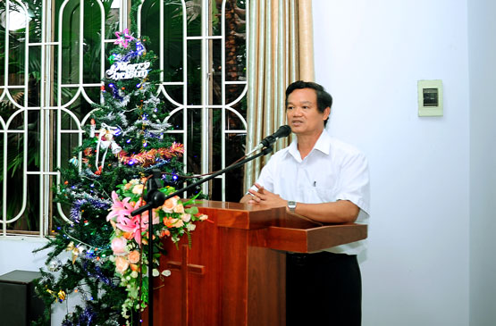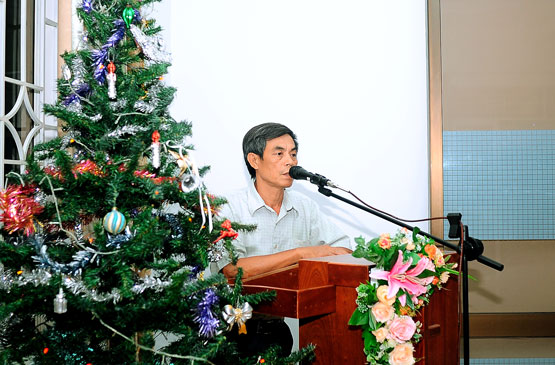 Trước khi phát quà Đặc Trách Điểm Nhóm có vài lời với bà con mục đích thực hiện công tác từ thiện trong mùa Giáng Sinh với tấm lòng yêu Chúa và yêu bà con, nên con dân Chúa trong Hội thánh đã góp phần san sẻ với bà con trong hoàn cảnh khó khăn. Và cầu xin Đức Chúa Trời cho bà con vượt sự khó khăn để xoá nghèo trong gia đình của mình. Tiếp đến là đại diện chính quyền có lời cảm ơn Hội thánh Vĩnh Phước đã tận tình giúp đỡ bà con trong địa phương với lời cảm kích và cầu Chúa ban cho Mục sư và tín hữu được nhiều sức khoẻ để phục vụ Chúa. Cuối cùng MsQn Hội thánh có vài lời với bà con và cầu nguyện trước khi phát quà.