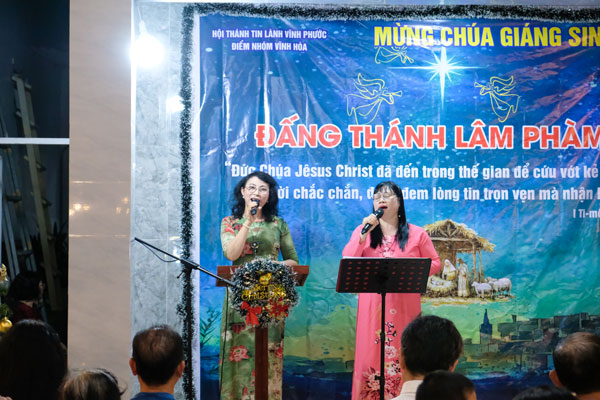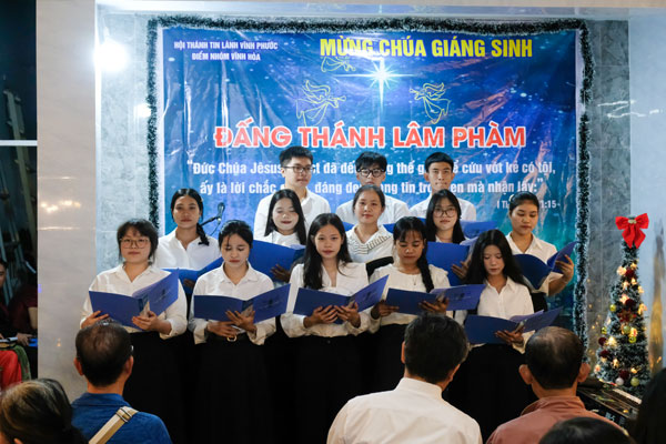 Điểm nhóm Vĩnh Hoà tổ chức chương trình Truyền giảng Tin Lành lúc 19g30 ngày 12/12/2025 tại nhà Ôb. Châu Đức Thủy, số 11 Nguyễn Xiển, phường Bắc Nha Trang. Hiện diện có Ms. Nguyễn Văn Tơ, MsQn. Nguyễn Công Nghĩa cùng khoảng 140 tín hữu và thân hữu tham dự. Các thân hữu đã đến từ rất sớm và được tiếp đón nhiệt tình, mỗi người được cài một đóa hoa hổng màu đỏ, sau đó được các thành viên Ban Tiếp tân đưa vào ngồi ở các hàng ghế đầu phòng nhóm.