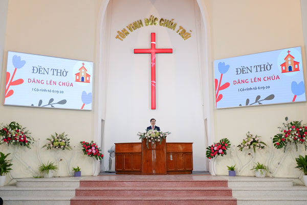 Mục sư Quản nhiệm có Lời Chúa cho Hội thánh với chủ đề “ĐỀN THỜ DÂNG CHÚA”, nương trên Kinh thánh I Cô-rinh-tô 6:19-20 “Anh em há chẳng biết rằng thân thể mình là đền thờ của Đức Thánh Linh đang ngự trong anh em, là Đấng mà anh em đã nhận bởi Đức Chúa Trời, và anh em chẳng phải thuộc về chính mình sao? Vì chưng anh em đã được chuộc bằng giá cao rồi. Vậy, hãy lấy thân thể mình làm sáng danh Đức Chúa Trời.” Cơ thể CĐN là đền thờ của Chúa, Sự tồn tại của CĐN là sở hữu của Chúa nên Bổn phận của CĐN là tôn vinh Chúa.