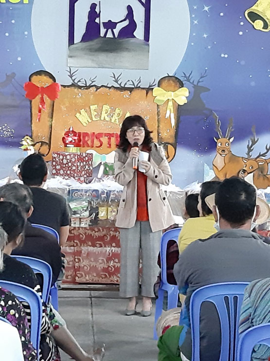 Mục sư Quản nhiệm Nguyễn Công Nghĩa đã Cầu nguyện cho bà con, mong ước họ nhận được món quà cứu rỗi từ Chúa Giê-xu trong dịp Giáng Sinh này.