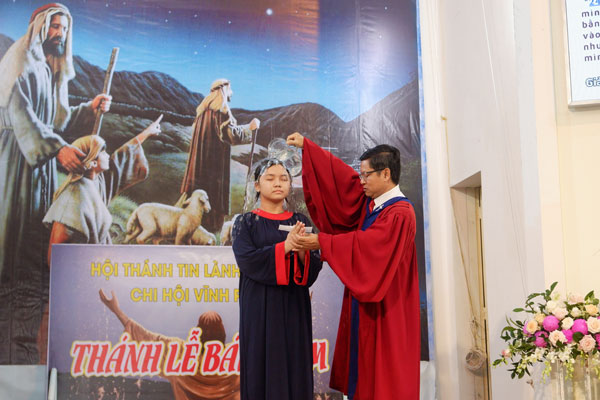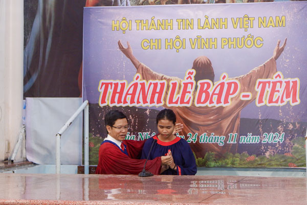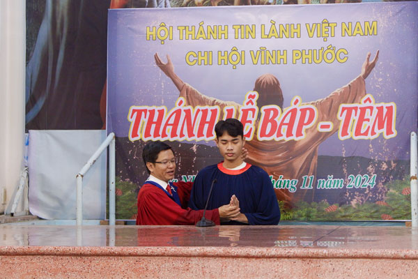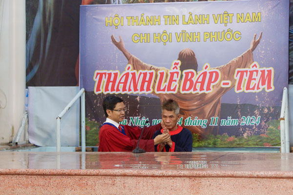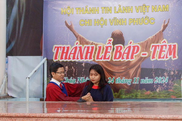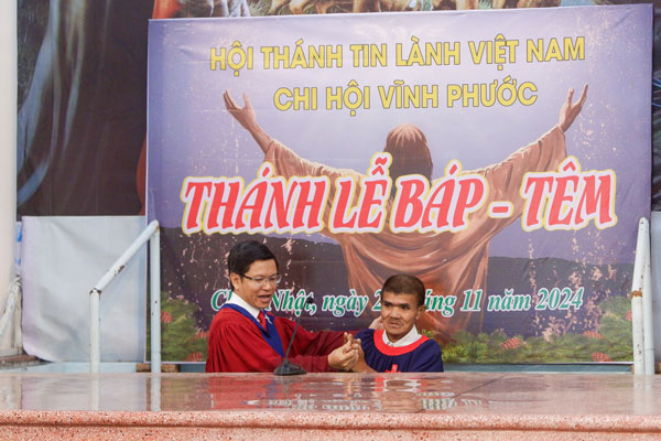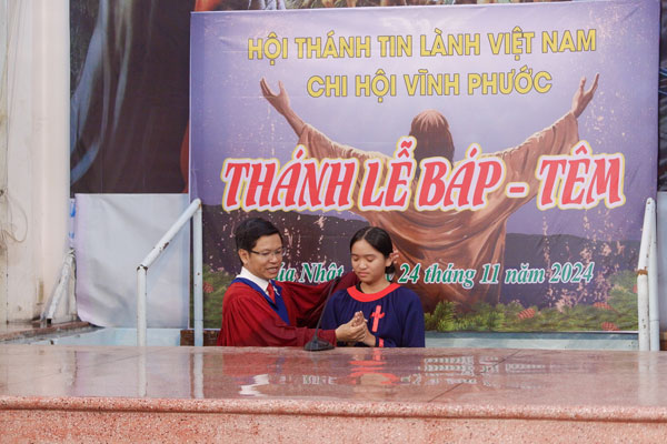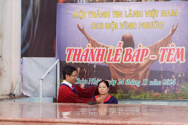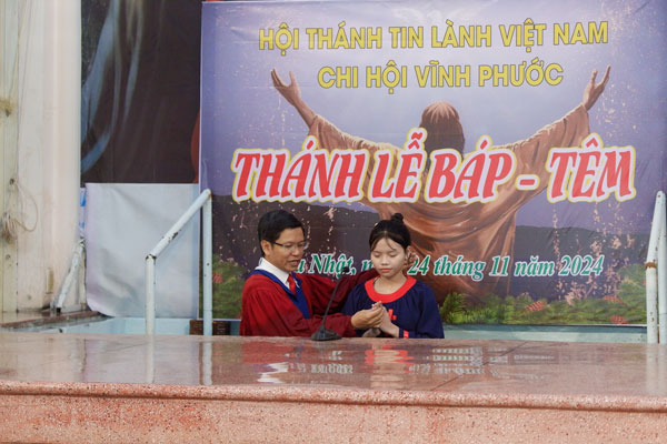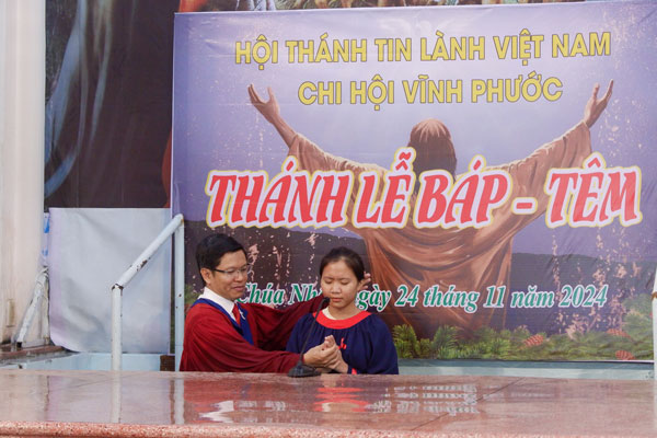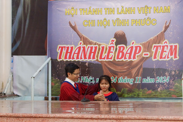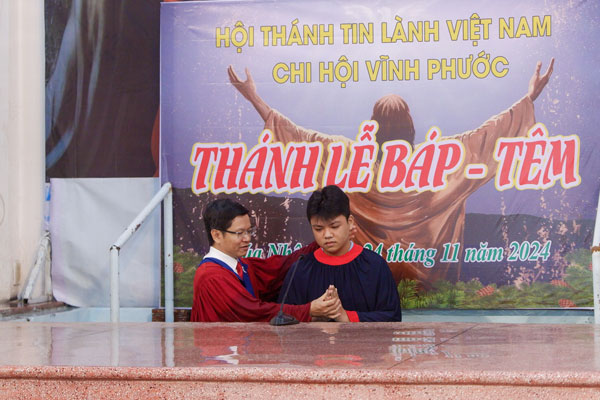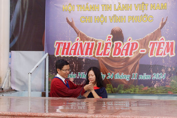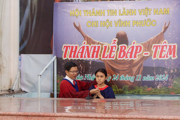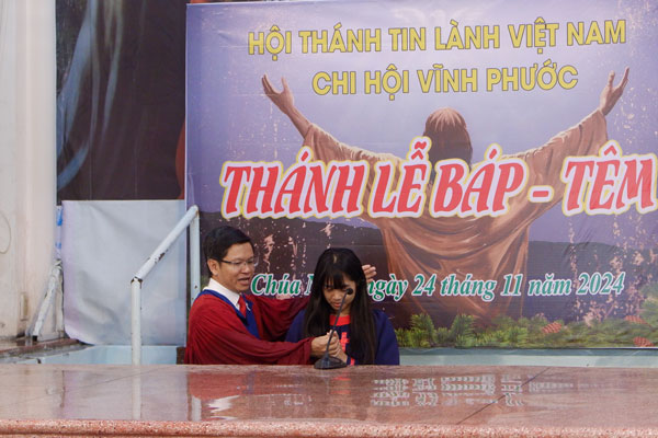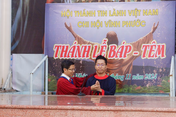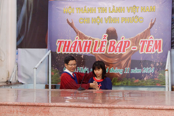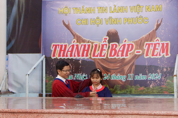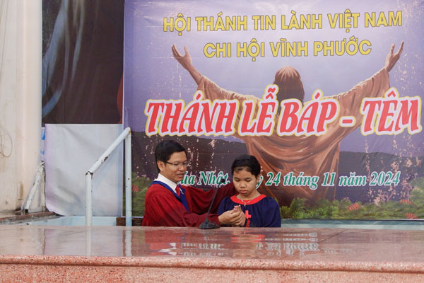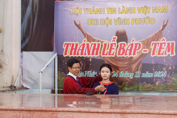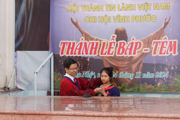 Vừa qua, vào lúc 8h00 Chúa nhật 24/11/2024, tại nhà thờ Tin lành Vĩnh Phước, Mục sư Quản nhiệm Nguyễn Công Nghĩa đã cử hành Thánh Lễ Báp Têm cho 23 ứng viên trong đó có 10 tân tín hữu mới tin nhận Chúa trong những tháng vừa qua, còn lại là những học sinh, sinh viên của các gia đình con cái Chúa. Người lớn tuổi nhất là 52 tuổi, người nhỏ nhất là 15 tuổi.
