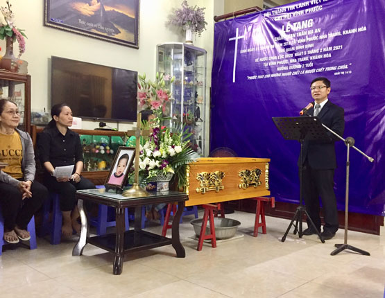 Lễ nhập quan diễn ra vào lúc 18h00 ngày 05/2/2012 tại tư gia và Lễ di quan vào ngày hôm sau lúc 15h00 ngày 06/2/2021 với sự hiện diện của gia đình Tang quyến cùng Mục sư Quản nhiệm Nguyễn Công Nghĩa và con dân Chúa trong Hội Thánh cũng như Khu vực Tây Hòn Chồng.