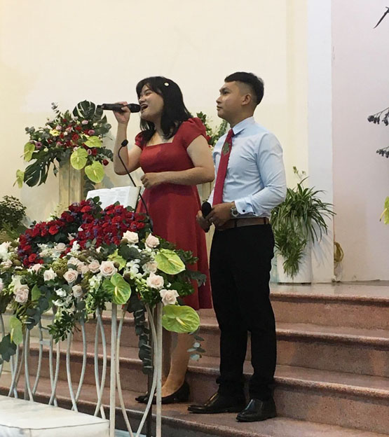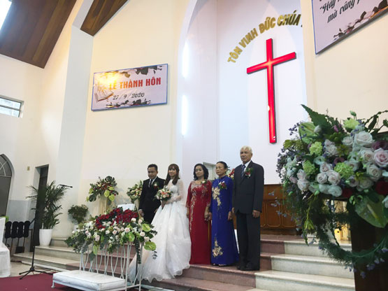 MsQn. Nguyễn Công Nghĩa làm chủ lễ và thực hiện nghi thức hôn phối cho hai bạn. Ban Thanh Niên Hội Thánh góp phần tôn vinh Chúa và chúc mừng đến gia đình mới của hai bạn. Thầy Phan Kiều đọc điện tín chúc mừng. Lễ Thành Hôn được diễn ra trang nghiêm, trang trọng. Sau đó MsQn. Nguyễn Công Nghĩa chúc Phước cho Hội Thánh và cho gia đình mới.