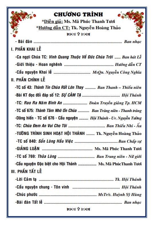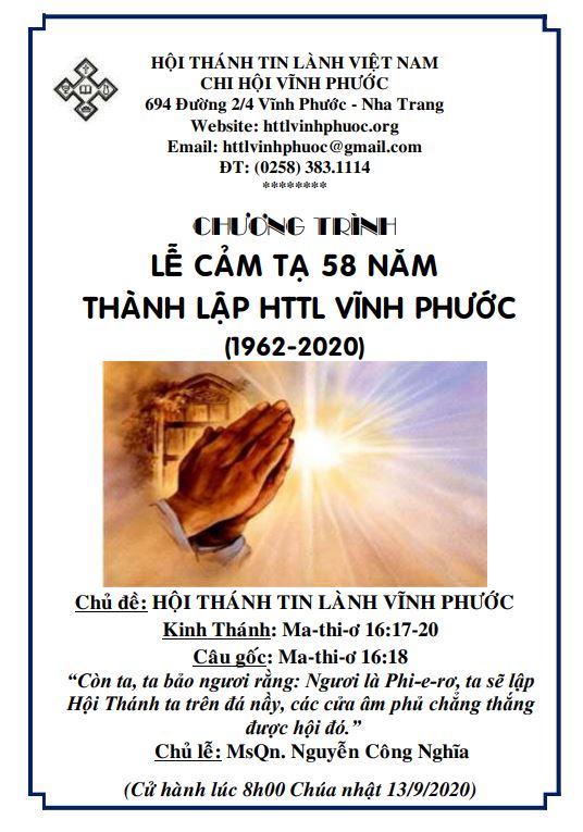 v/v Lễ Cảm tạ lần thứ 58 - HTTL Vĩnh Phước