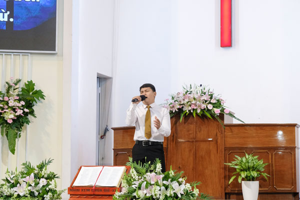 Mục sư Quản nhiệm Nguyễn Công Nghĩa cầu nguyện tin nhận