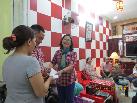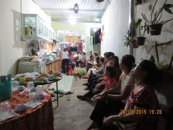Sau giờ nhóm, mọi người cùng thông công tiệc mặn do gia đình tiếp đãi.