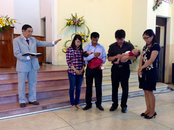 - Chúa nhật 25/5/2014 có lễ dâng con cho 2 gia đình: Anh chị Lê Lưu Thiên Định và Trần Phương Hà dâng con trai là Lê An Khương, Anh chị Cao Văn Phúc và Nguyễn Thị Thùy Linh dâng con gái là Cao Ngọc Khải Tâm lên cho Chúa. Hội thánh cầu nguyện để Chúa ban phước trên hai gia đình và hai cháu.